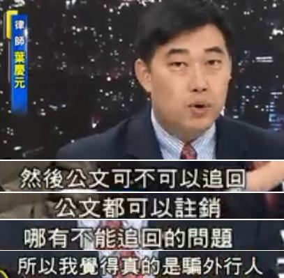 國民黨“立委”費鴻泰則認為:沒有蔡英文的授意,葉俊榮不敢做這樣的事兒。