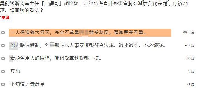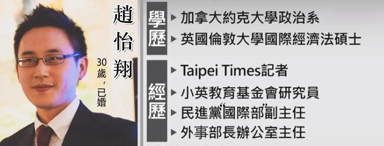 另一曾當(dāng)過“政治組長”的前“駐美代表”沈呂巡直言,1993年他任此職時,已在外事部門工作戮力了11年,而一般外事官有些就算做了11年都還不一定能出任“政治組長”這樣的職務(wù),“請問趙怡翔在外事部幾年?這個任命對基層同仁很不公平”。