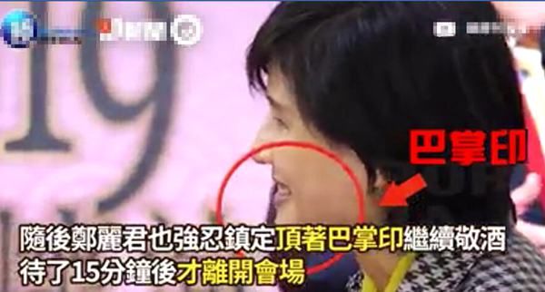 據悉22日下午,打扮得漂漂亮亮、神采奕奕的鄭麗君,正在現場逐桌敬酒呢,而就在她身體前傾地專注著與陳松勇敬酒寒暄時,突然,就被人甩了一耳光!