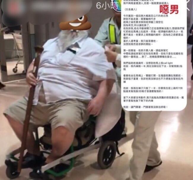 最扯的是,該名白人男子下機被一名男性接走時,對方問他上廁所要不要協助,他竟回“不需要協助”!