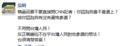 問題是,人家CNN也不是很看好你蔡英文連任啊,甚至于人家根本不care這事兒……CNN在報(bào)道中分析認(rèn)為,蔡英文的連任之路將相當(dāng)艱困,“有些民調(diào)顯示,蔡英文支持度落后國民黨對手朱立倫達(dá)30個(gè)百分點(diǎn)”、“民進(jìn)黨大佬呼吁蔡英文別競選連任”。