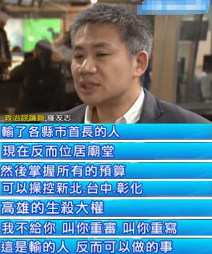 “輸了各縣市首長(zhǎng)的人,現(xiàn)在反而位居朝堂,掌握所有預(yù)算,操控生殺大權(quán)”,政治評(píng)論員羅友志的哀嘆與臺(tái)灣網(wǎng)友的看法不謀而同……