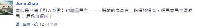 “民主制度是這樣的嗎?”、“選輸?shù)母吒咴谏现笓]勝利者,把民意當(dāng)成屁”、“民進(jìn)黨已是死豬不怕開(kāi)水燙”……民眾的吐槽與憤懣,不僅表達(dá)了對(duì)民進(jìn)黨酬庸政治的不滿,也顯示出了對(duì)臺(tái)灣未來(lái)之路的憂心。