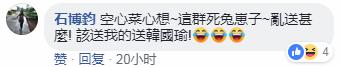還有網(wǎng)友對“送黃袍”這事兒嗤之以鼻,“這不是王世堅用過的舊招數(shù)嘛”、“黃鼠狼給雞拜年”、“什么時代了,綠蛆還想做皇帝?”;也有人覺得,這“黃袍”怕是送錯對象了,“空心蔡心想:亂送什么,該送我的送韓國瑜!”;