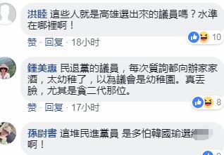 而這樣“議員”與“議會”,也讓網(wǎng)友不禁質(zhì)疑“這些人就是高雄選出來的議員嗎?水準在哪里?”、“民進黨的議員,以為議會是幼稚園,真丟臉!”、“領(lǐng)納稅人的錢卻不做事”。
