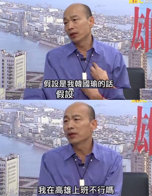 主持人追問,“行政院”要南遷嗎?“總統府”要南遷嗎?韓國瑜果斷回應,都不用,領導人一個在高雄就夠了。