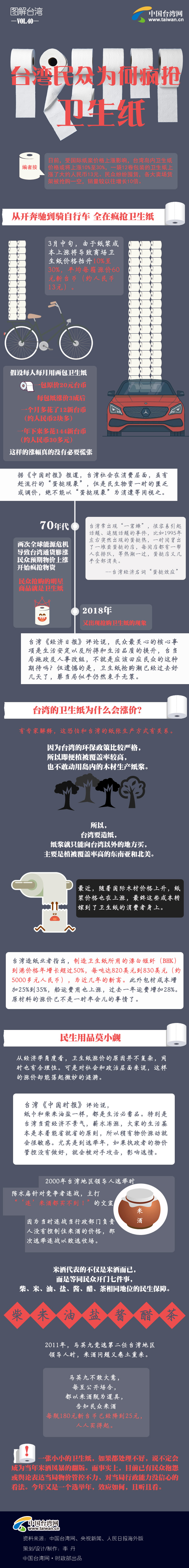 【編者按】日前,受國際紙漿價格上漲影響,臺灣島內衛生紙價格或將上漲10%至30%,一袋12卷包裝的衛生紙上漲了大約人民幣13元。民眾紛紛囤貨,各大賣場貨架被搶購一空,銷量較以往增長10倍。