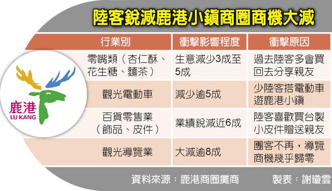 大陸游客銳減,鹿港小鎮商圈商機大減。(圖片來源:臺灣《中國時報》)