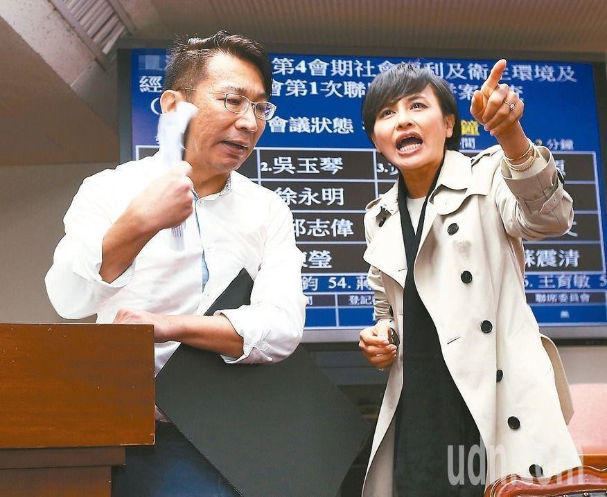 徐永明(左)遭邱議瑩(右)諷“你們太陽花已崩潰了”。(圖片來源:臺灣《聯合報》)