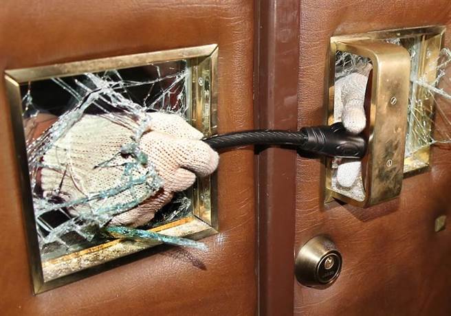 徐永明敲破議場門口玻璃“突襲”后,以鐵鏈反鎖。(圖片來源:臺灣《聯(lián)合報》)