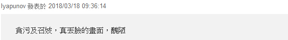 據(jù)臺(tái)灣《聯(lián)合報(bào)》報(bào)道,國(guó)民黨發(fā)言人洪孟楷批評(píng),保外就醫(yī)的受刑人陳水扁再次公然挑戰(zhàn)中監(jiān),違反四不原則的第一不“不上臺(tái)”,看來(lái)這也是陳水扁在試探底線的第一步,如果這次民進(jìn)黨當(dāng)局再不依照法治精神給予制裁,往后還會(huì)再持續(xù)違反第二不、第三不。而看在民眾眼里,這樣個(gè)貪污犯還能大辣辣的公開站臺(tái),現(xiàn)在的臺(tái)當(dāng)局不作為,那就等著2020年政黨輪替下臺(tái)負(fù)責(zé)!