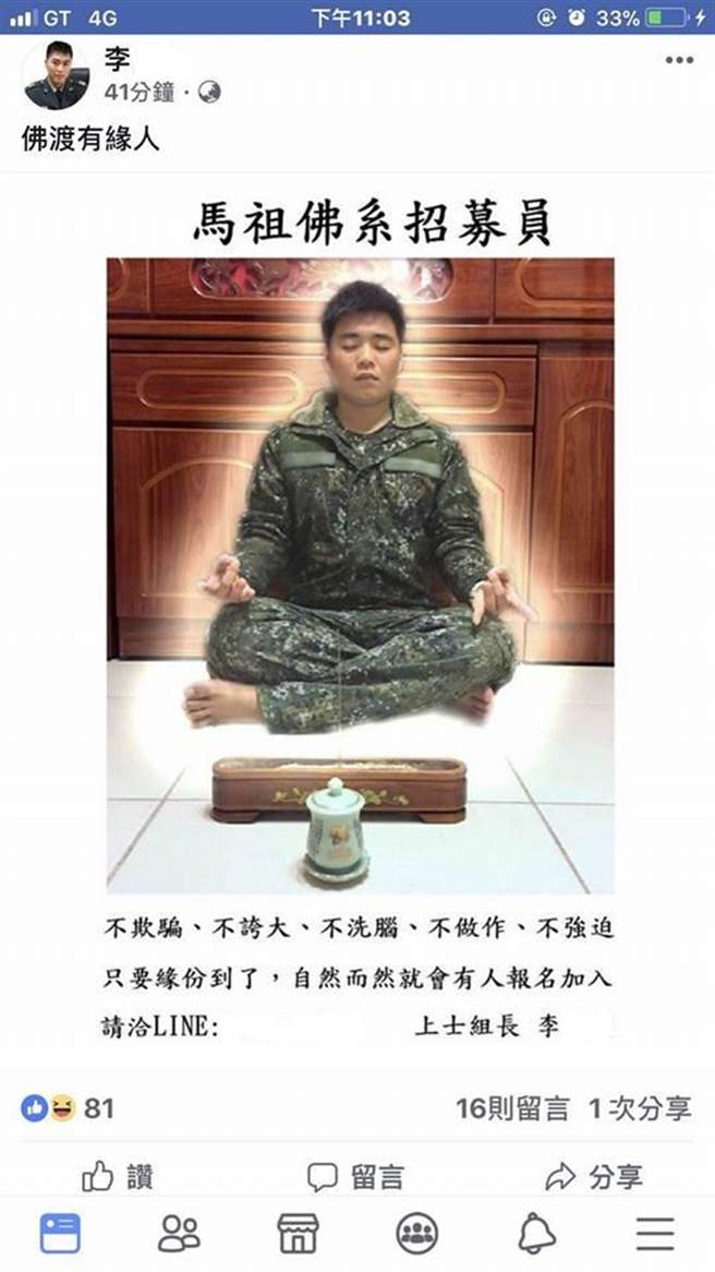 臺軍招募,打出“馬祖佛系”。(圖片取自臺媒)