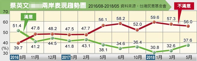 蔡英文兩岸表現趨勢圖。(圖片來源:臺灣《中國時報》)