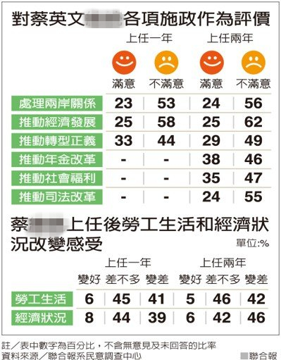 蔡英文表現民調圖。(圖片來源:臺灣《聯合報》)