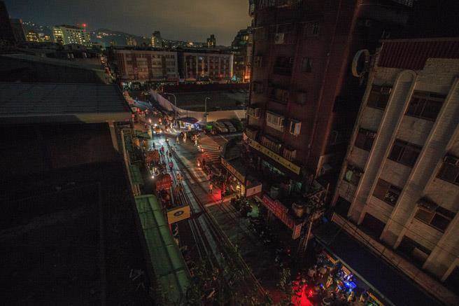 2017年8月15日,臺灣無預警大停電。圖為當天臺北市石牌地區許多民眾在一片黑暗中前往商城用餐。(圖片來源:臺灣《中時電子報》)