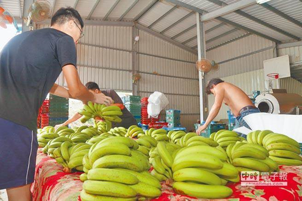 圖為蕉農(nóng)忙著整理香蕉。(圖片來源:臺灣《中時(shí)電子報(bào)》)