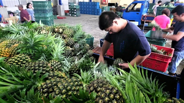 嘉義縣鳳梨斤年產(chǎn)量增加,單一合作社每天進(jìn)貨達(dá)10萬臺斤以上,農(nóng)民直言每臺斤均價(jià)低于4元完全不符成本。(圖片來源:臺灣《聯(lián)合報(bào)》)