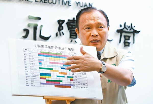 “農(nóng)委會主委”林聰賢舉行記者會,提出穩(wěn)定產(chǎn)銷政策。(圖片來源:臺灣《聯(lián)合報(bào)》)