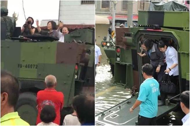 蔡英文搭裝甲車勘災。(圖片來源:臺灣“中時電子報”)