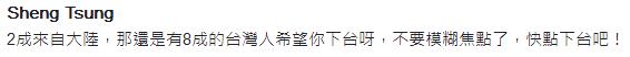 還有網友表示,就算2成來自大陸,那還有8成臺灣人希望你下臺!