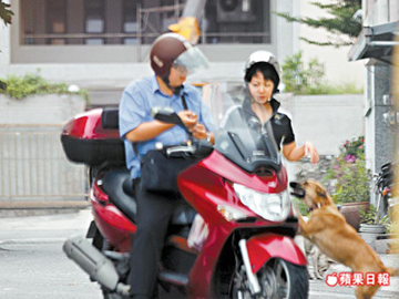 鄭百君與越南籍女友黎氏,昨共乘摩托車回花蓮住處。圖片來源:臺灣《蘋果日報》