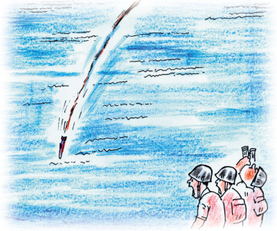 陸射麻雀導彈因推進器燃燒不完全,脫靶落海。 鐘央攝