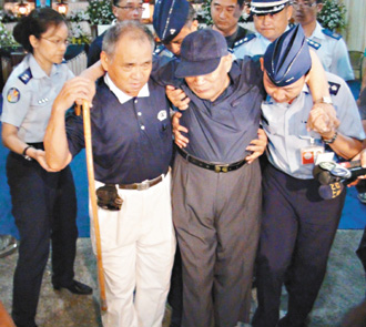 常建國(guó)85歲的老父(右二)離開靈堂時(shí),難過到走不動(dòng)。圖片來自臺(tái)灣《聯(lián)合報(bào)》