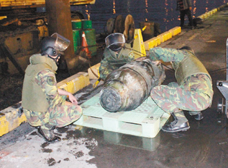 中國臺灣網12月13日消息 據臺灣《聯合報》報道,基隆港為迎接22日即將亮相的黃色小鴨,最近趕工疏浚深內港,昨天傍晚時分,在港內撈出一顆重500磅的炸彈。臺軍方分析可能是二次大戰美軍轟炸基隆港的燃燒彈,經檢視引信已斷。