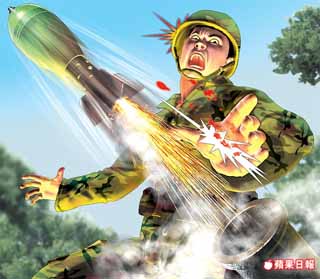 迫擊炮彈瞬間擊發(fā),造成二名臺(tái)軍士兵手掌及手肘受重傷。 來(lái)源:臺(tái)灣《蘋果日?qǐng)?bào)》