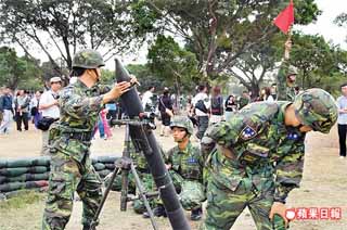 迫炮操演,臺(tái)軍士兵從炮管投入炮彈。 來(lái)源:臺(tái)灣《蘋果日?qǐng)?bào)》