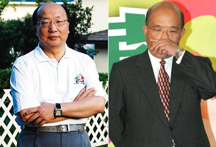 胡志強(左)不想選臺北縣長,只想跟蘇貞昌(右)比誰頭發多。
