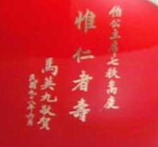 中國臺灣網(wǎng)6月16日消息 據(jù)臺灣“今日新聞”報道,國民黨主席吳伯雄19日70歲大壽,馬英九17日將出席國民黨中央為吳伯雄舉辦的暖壽活動,馬英九除了送上壽酒外,還特別用毛筆書寫了“唯仁者壽”四個大字,燒在大紅瓷器上要當(dāng)作生日禮物。