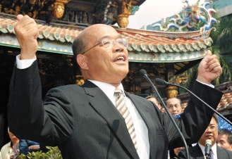 蘇貞昌(上)宣布將參選臺北市長,郝龍斌(下)隨后火力全開批評、質疑。來源:臺灣《聯合晚報》