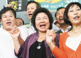 大高雄市長初選陳菊篤定出線,難掩喜悅,笑臉滿盈。圖片來源:臺灣《聯(lián)合報》