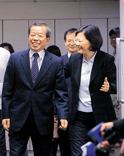 陳水扁當局前“行政院長”謝長廷(中)與民進黨主席蔡英文(右)圖片來源:臺灣《中國時報》