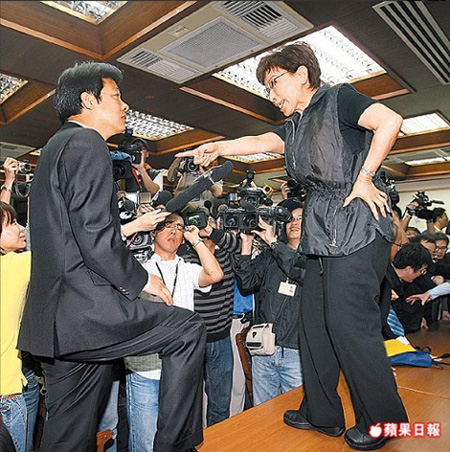 國(guó)民黨籍民意代表洪秀柱(右)與民進(jìn)黨籍民代賴清德(左)互嗆。
