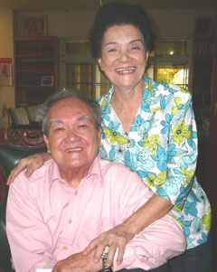 邱連輝13日上午因病過世。右為邱太太謝柑妹。(臺灣《聯(lián)合報》資料圖)