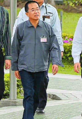 陳水扁移監服刑,兒子陳致中8日首次探監,編號1020的陳水扁走到會見中心,三分頭造型曝光,他拿著塑料袋,可能是戴慣腳鐐的原因,走路大步大步的跨。陳水扁走的路線是看守所特地安排的新路線。