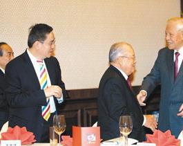 李登輝(右一)昨晚八十八歲生日,共同設宴者包括“立法院長”王金平(左一)、前考試院長許水德(右二)等親李人士,與會者還有王文洋(左二)。