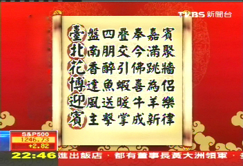 中國臺灣網(wǎng)12月22日消息 據(jù)臺灣TVBS電視臺報道,兩岸兩會領導人第六次會談21日在臺北舉行,20日晚海基會在臺北圓山飯店宴請包括海協(xié)會會長陳云林等海協(xié)會相關人士。晚宴準備的菜色都是具有臺灣特色的佳肴,最特別的是由12道菜名組成一首藏頭詩,將“臺北花博迎賓”的字眼鑲嵌在里面。
