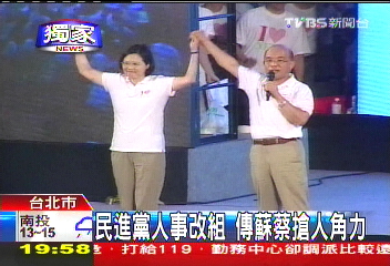 中國(guó)臺(tái)灣網(wǎng)1月20日消息 據(jù)臺(tái)灣TVBS電視臺(tái)報(bào)道,國(guó)民黨近日發(fā)生人事大地震,民進(jìn)黨也“跟風(fēng)”進(jìn)行人事改組,預(yù)計(jì)最快下周公布。其中值得一提的是,蔡英文將延攬?zhí)K貞昌派系的前議員黃向群進(jìn)入民進(jìn)黨中央。外界對(duì)此次“搶人戰(zhàn)”解讀稱,蘇貞昌、蔡英文原本就關(guān)系緊張,未來(lái)又極可能是2012“大選”初選競(jìng)爭(zhēng)對(duì)手,蔡英文此舉是在示意蘇貞昌她將出馬參選2012,蘇蔡2012出線大戰(zhàn)將正式拉開(kāi)序幕。
