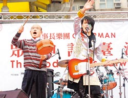 蘇貞昌(左)23日參加董事長(zhǎng)樂(lè)團(tuán)專輯簽唱會(huì),現(xiàn)場(chǎng)當(dāng)起一日?qǐng)F(tuán)員,拿樂(lè)器賣力表演。圖片來(lái)源:臺(tái)灣《中國(guó)時(shí)報(bào)》