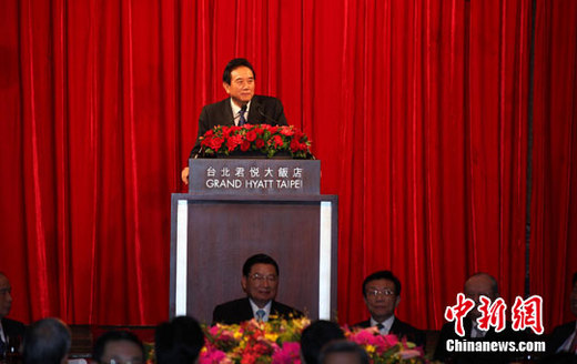 2月23日晚間,臺(tái)灣;鶗(huì)在臺(tái)北君悅大飯店設(shè)宴歡迎大陸海協(xié)會(huì)會(huì)長(zhǎng)陳云林一行,圖為陳云林在晚宴上致辭。中新社記者 符永康 攝