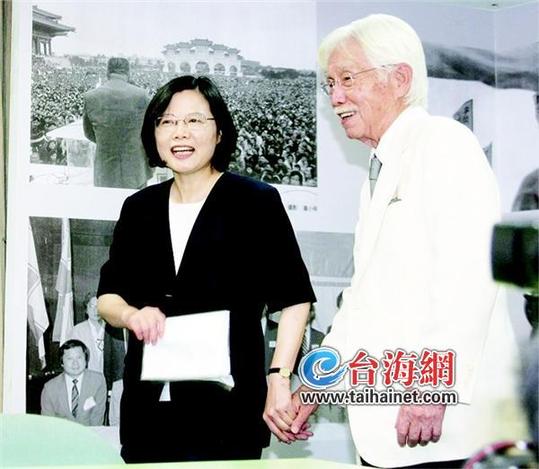 蔡英文和“獨(dú)派”大佬辜寬敏手拉手(資料圖)