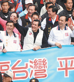 國民黨2012年臺灣地區領導人候選人馬英九上午和臺灣地區副領導人候選人吳敦義“合體”在臺中催票,下午,奔回臺北領軍游行,人數估計超過20萬人;晚間馬英九再深入敵營,殺到臺南舉行造勢晚會,展現連任氣勢。