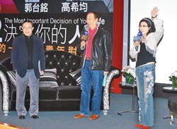 圖為“獻(xiàn)給失落的一代——與青年對(duì)話”論壇發(fā)起者鴻海集團(tuán)總裁郭臺(tái)銘(中)、經(jīng)濟(jì)學(xué)家高希均(左)、電視節(jié)目主持人陳文茜(右)。(圖片來(lái)源:臺(tái)灣《旺報(bào)》)