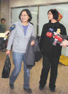 民進黨主席蔡英文敗選后,昨天前往臺北市競選辦公室與幕僚開會,隨后離開。(圖片來源于:臺灣《聯合報》)