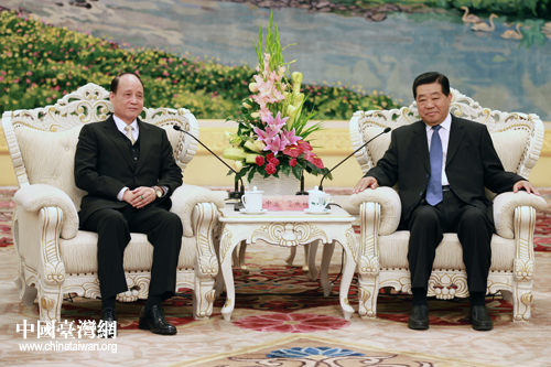 中共中央政治局常委、全國政協主席賈慶林17日下午在人民大會堂會見了海基會新任董事長林中森。(中國臺灣網 陳佳慧 攝)
