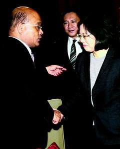 民進黨主席蘇貞昌(左)、前主席蔡英文(右)兩 人互拼下鄉、走基層、主導議題,黨內形容是“兩個太陽”的競爭。圖片來自臺灣《聯合報》