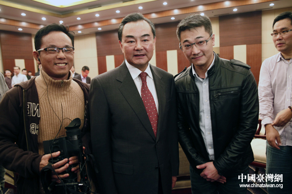 王毅與臺灣媒體記者合影。(中國臺灣網(wǎng) 何建峰 攝)